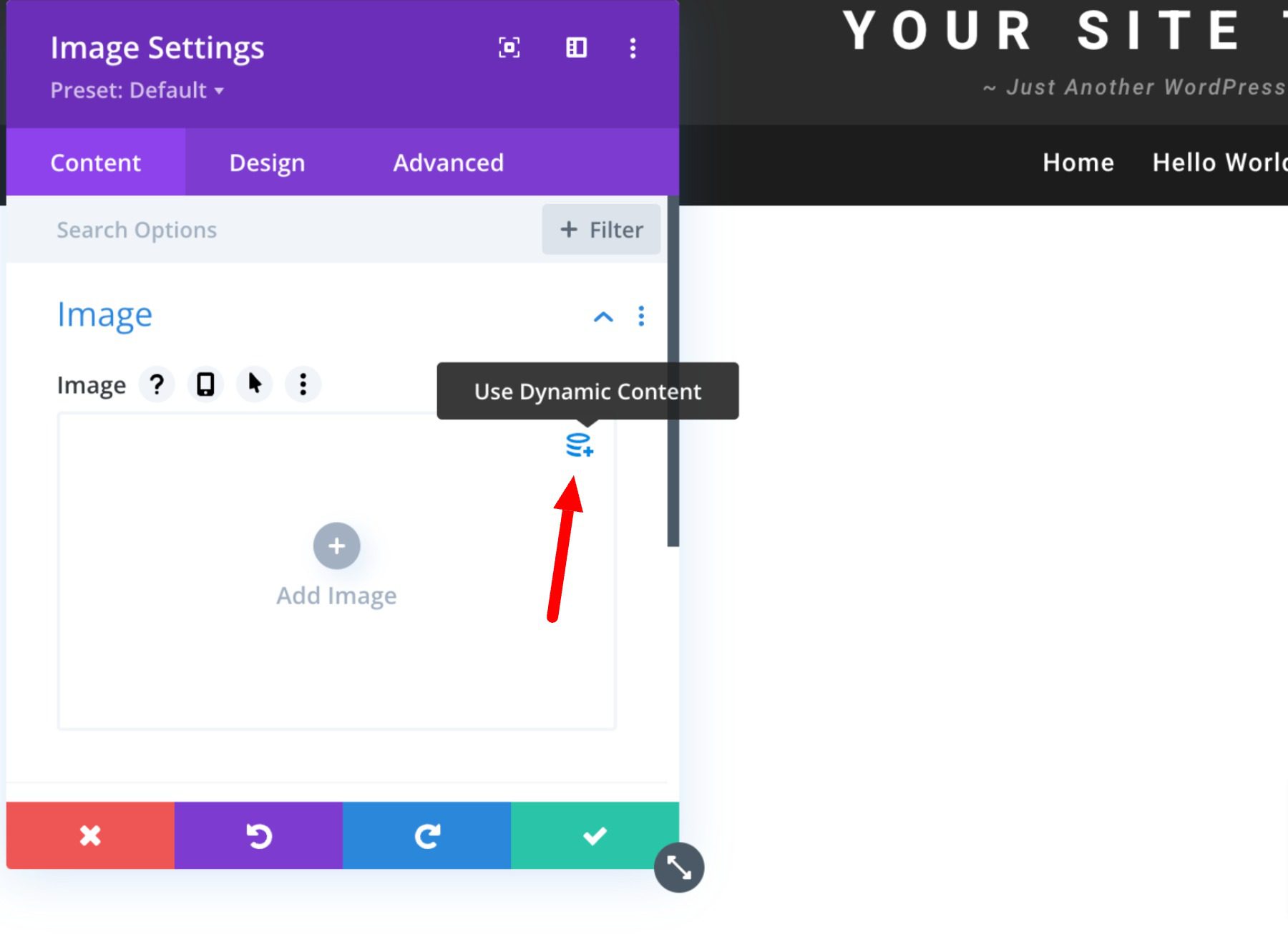 You can also adjust the image size and position by switching to the ‘Advanced’ tab at the top of the settings panel.